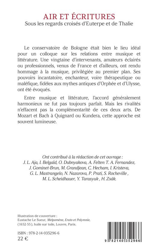 Le conservatoire de Bologne était bien le lieu idéal pour un colloque sur les relations entre musique et littérature. Une vingtaine d'intervenants, amateurs éclairés ou professionnels, venus de France et d'ailleurs, ont rendu hommage à la musique, privilégiée au premier plan. Ses pouvoirs incantatoire, enchanteur, voire thérapeutique ou maléfique, fidèles aux mythes antiques d'Orphée et d'Ulysse, ont été évoqués. Entre musique et littérature, l'accord généralement harmonieux ne fut pas toujours parfait. Mais les rivalités n'effacent pas la complémentarité de ces deux arts. De Mozart et Bach à Quignard ou Kundera, cette approche est souvent lumineuse.
