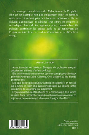 Cet ouvrage traite de la vie de ‘Aïsha, femme du Prophète. Elle est un exemple non pas uniquement pour les femmes mais aussi et surtout pour les hommes musulmans. Ils se doivent d'encourager et d'inciter leur sœurs en religion à revendiquer leurs droits légitimes pour, qu'ensemble, ils puissent confronter les grands défis de ce renouveau de l'Islam au sein de cette modernité confuse et si difficile à vivre.
