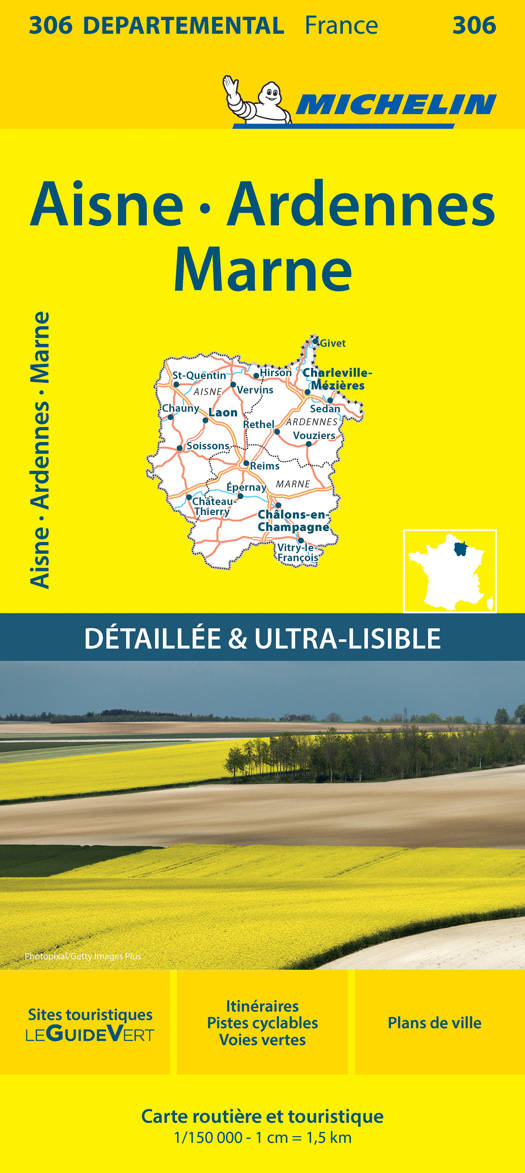 Met een schaal van 1/150 000 oftewel 1cm = 1,5km en reliëf van satellietbeeld biedt de Michelin kaart DEPARTEMENT Aisne, Ardennes, Marne u een exact beeld van de topografie. Dankzij de aangeraden toeristische trajecten laat ze u toe om alle rijkdom en plaatselijkebezienswaardigheden grondig te verkennen en de mooiste toeristische sites te ontdekken, uitgekozen en aangeduid door Michelin. U zal er ook de nieuwe nummering van de nationale en departementale wegen ontdekken,alsook stadsplattegronden van de belangrijkste steden.