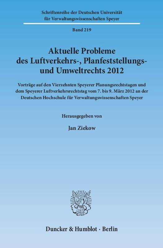 Vorträge auf den Vierzehnten Speyerer Planungsrechtstagen und dem Speyerer Luftverkehrsrechtstag vom 7. bis 9. März 2012 an der Deutschen Hochschule für Verwaltungswissenschaften Speyer