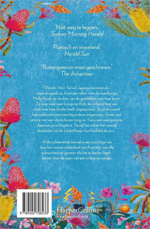 Al die schitterende hemels is een prachtige reis door het woeste achterland van Australië, met alle schoonheid en gevaren die het te bieden heeft, bezien door de ogen van een vroegwijs meisje.