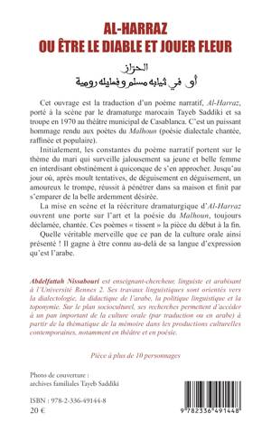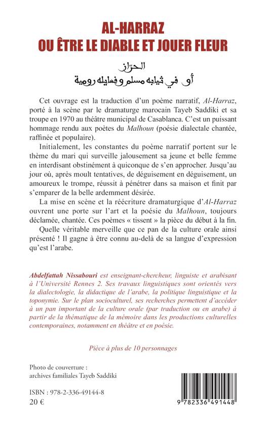 Cet ouvrage est la traduction d'un poème narratif, Al-Harraz, porté à la scène par le dramaturge marocain Tayeb Saddiki et sa troupe en 1970 au théâtre municipal de Casablanca. C'est un puissant hommage rendu aux poètes du Malhoun (poésie dialectale chantée, raffinée et populaire). Initialement, les constantes du poème narratif portent sur le thème du mari qui surveille jalousement sa jeune et belle femme en interdisant obstinément à quiconque de s'en approcher. Jusqu'au jour où, après moult tentatives, de déguisement en déguisement, un amoureux le trompe, réussit à pénétrer dans sa maison et finit par s'emparer de la belle ardemment désirée. La mise en scène et la réécriture dramaturgique d'Al-Harraz ouvrent une porte sur l'art et la poésie du Malhoun, toujours déclamée, chantée. Ces poèmes tissent la pièce du début à la fin. Quelle véritable merveille que ce pan de la culture orale ainsi présenté ! Il gagne à être connu au-delà de sa langue d'expression qu'est l'arabe.