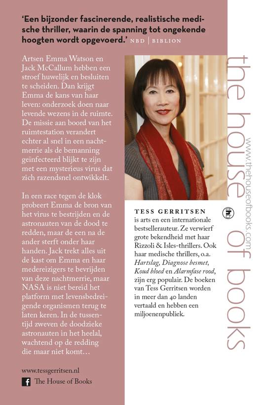 Tess Gerritsen is arts en een internationale bestsellerauteur. Ze verwierf grote bekendheid met haar Rizzoli & Isles-thrillers. Ook haar medische thrillers, o.a. Hartslag, Diagnose besmet, Koud bloed en Alarmfase rood, zijn erg populair. Haar boeken worden in meer dan 40 landen vertaald en hebben een miljoenenpubliek.