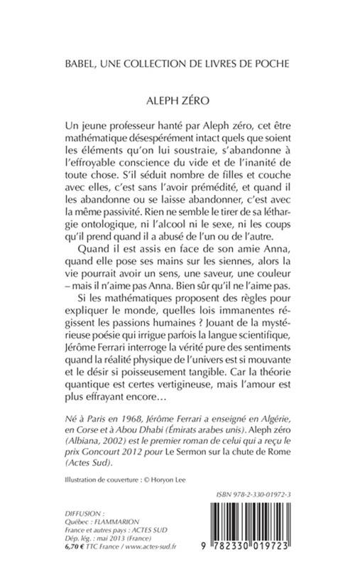 Un jeune professeur hanté par l'inanité de toute chose cherche dans les lois physiques et mathématiques une logique au chaos du monde auquel il menace de s'abandonner - à moins que l'amour soit un risque pire encore. Ce premier roman de Jérôme Ferrari, prix Goncourt 2012 avec «Le Sermon sur la chute de Rome», a été publié en Corse en 2002.