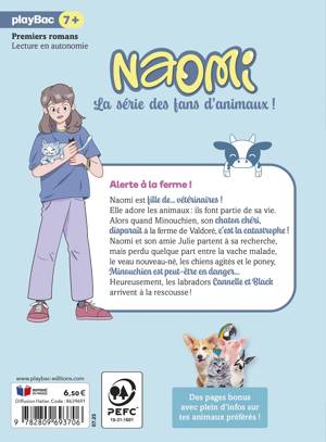 Naomi est fille de... vétérinaires ! Elle adore les animaux: ils font partie de sa vie. Alors quand Minouchien, son chaton chéri, disparaît à la ferme de Valdoré, c'est la catastrophe ! Naomi et son amie Julie partent à sa recherche, mais perdu quelque part entre la vache malade, le veau nouveau-né, les chiens agités et le poney, Minouchien est peut-être en danger... Heureusement, les labradors Cannelle et Black arrivent à la rescousse!