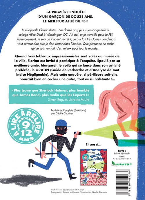 Je m'appelle Florian Bates. J'ai douze ans, je suis en cinquième au collège Alice Deal à Washington DC. Mes deux plats préférés sont la pizza et les nems. Je suis membre du conseil des élèves, du club de Scrabble et j'envisage d'intégrer l'équipe de football. Ah oui, et je travaille pour le FBI. Surprise ! Vous ne vous attendiez pas à ça, n'est-ce pas ? Techniquement, je suis un « agent secret », ce qui fait très James Bond mais veut surtout dire que je dois rester dans l'ombre. Apparemment, le FBI n'a pas envie d'admettre qu'ils font appel à un garçon de douze ans, ce serait embarrassant, et puis il ne faut bien entendu pas que les gars les plus recherchés du pays viennent frapper à ma porte. Que personne ne sache qui je suis, en fait, c'est mieux pour tout le monde...