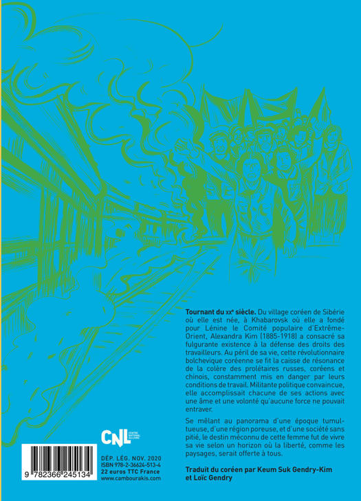 Ce roman graphique retrace la destinée hors-norme d'Alexandra Kim (1885-1918), révolutionnaire extrême-orientale méconnue, dans la période particulièrement tourmentée qui suit la fin de la Première Guerre mondiale. Le portrait dense et émouvant d'un femme forte et libre qui n'a jamais renoncé à ses idéaux et aux luttes de sa classe jusqu'à sa mort.