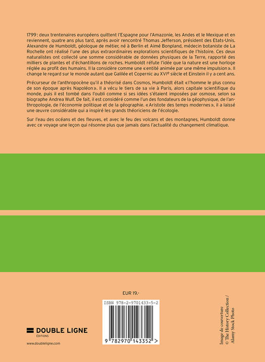 La crise écologique actuelle renvoie à une approche de la planète Terre qui a été celle d’un objet à exploiter. Nous sommes arrivés au terme d’un cycle qui a démarré à la fin du XVIIIe siècle à la charnière du siècle des Lumières et du romantisme. Au moment où le capitalisme financier met en place la colonisation, Alexandre de Humboldt, jeune géologue, né et formé à Berlin mais habitant Paris, prépare avec un médecin botaniste, Aimé Bonpland, une exploration scientifique qu’ils mènent en Amérique latine pendant quatre ans de 1799 à 1804. Une expédition impossible mais parfaitement réussie ! Ce voyage extraordinaire va révolutionner la lecture du monde et aider Darwin à penser l’évolution et Haeckel à inventer le mot « écologie ». Gilles Fumey, géographe qui a déjà écrit sur le XIXe siècle des explorateurs, retrace ce voyage extraordinaire mené dans des conditions extrêmes et qui fut, par le génie de Humboldt, un exploit et une réussite totale. Comment nos corps « travaillent » à lire la nature ? Comment les scientifiques ont percé le secret de la planète Terre ? S’inspirant des notes de voyage et de la correspondance de Humboldt, le livre reconstitue la manière avec laquelle sont nées nos lectures du monde actuel. Pour raconter ce voyage, Gilles Fumey a imaginé comment le savant botaniste, géographe, anthropologue, chimiste, physicien du globe, a pensé cette expédition hors normes. En privilégiant deux éléments naturels pour donner de ce voyage extrêmement riche, Gilles Fumey donne un double fil aux lecteurs et lectrices : l’eau et le feu. L’eau, c’est l’Atlantique franchi dans une corvette, l’Orénoque un des plus grands fleuves du monde encore inconnu et le Pacifique avec ses courants marins. Le feu, c’est celui des volcans faisant le lien entre les premières expériences d’Alexandre de Humboldt dans les mines allemandes et les volcans des Andes et du Mexique. L’eau et le feu permettront de révolutionner les théories sur la formation de la Terre. Grâce à Humboldt, on sait désormais que la Terre est un grand Tout et que toucher une de ses parties, c’est affecter l’ensemble. La crise actuelle ne dit pas autre chose. <br />