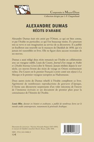 Alexandre Dumas était très attiré par l'Orient, ce qui est bien connu, et par l'Arabie en particulier, ce qui l'est beaucoup moins. Il a pourtant mis sa verve et son imagination au service de sa découverte. Il a publié en feuilleton une nouvelle sur le massacre de Djeddah de 1858, qui n'a jamais été rassemblée en livre. Elle ne figure dans aucune recension de ses uvres. Dumas a aussi rédigé deux récits romancés sur l'Arabie en collaboration avec un voyageur oublié, Louis du Couret, Journal d'un voyage en Arabie et L'Arabie heureuse (c'est-à-dire le Yémen). Jamais réédités depuis le xixe siècle, ces uvres livrent des récits de voyage en Orient extrêmement riches. Du Couret est le premier Français à avoir conté son séjour à La Mecque et le premier voyageur européen au Hadramaout. Deux autres écrits de Dumas relatifs à l'Arabie complètent ce livre. Agrémenté de nombreuses reproductions de gravures d'époque, il forme une découverte surprenante d'un volet méconnu de l'uvre de l'immense écrivain et un document de premier plan pour la connaissance de l'histoire de l'Arabie.