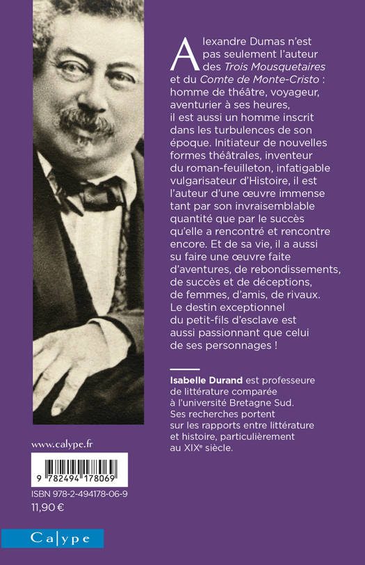 Alexandre Dumas n'est pas seulement l'auteur des Trois Mousquetaires et du Comte de Monte-Cristo : homme de théâtre, voyageur, aventurier à ses heures, il est aussi un homme inscrit dans les turbulences de son époque. Initiateur de nouvelles formes théâtrales, inventeur du roman-feuilleton, infatigable vulgarisateur d'Histoire, il est l'auteur d'une oeuvre immense tant par son invraisemblable quantité que par le succès qu'elle a rencontré et rencontre encore. Et pourtant, il a aussi su faire de sa vie une oeuvre faite d'aventures, de rebondissements, de succès et de déceptions, de femmes, d'amis, de rivaux. Le destin exceptionnel du petit-fils d'esclave est aussi passionnant que celui de ses personnages !