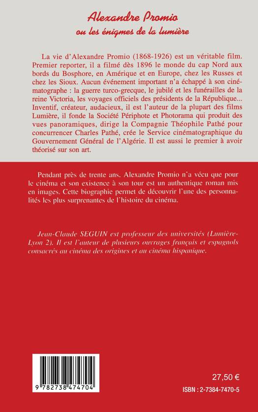 La vie d'Alexandre Promio (1868-1926) est un véritable film. Premier reporter, aucun événement important n'a échappé à son cinématographe : la guerre turco-grecque, le jubilé et les funérailles de la reine Victoria, les voyages officiels des présidents de la République… Inventif, créateur, audacieux, il est l'auteur de la plupart des films Lumière, il fonde et crée des sociétés et des services cinématographiques. Pendant près de trente ans, Alexandre Promio n'a vécu que pour le cinéma.