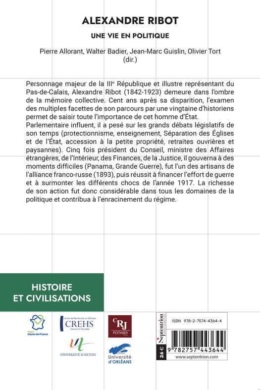 Personnage majeur de la IIIe République et illustre représentant du Pas-de-Calais, Alexandre Ribot (1842-1923) demeure dans l’ombre de la mémoire collective. Cent ans après sa disparition, l’examen des multiples facettes de son parcours par une vingtaine d’historiens permet de saisir toute l’importance de cet homme d’État.