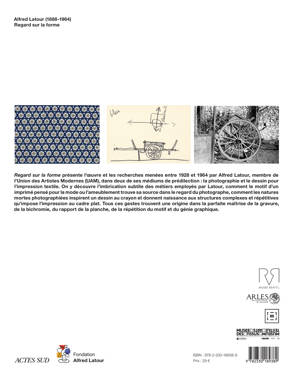 Regard sur la forme présente l'oeuvre et les recherches menées par Alfred Latour (membre de l'UAM - Union des Artistes Modernes) entre 1928 et 1964 dans deux des modes d'expression qu'il employa tout au long de sa carrière : la photographie et le dessin pour imprimés textiles.