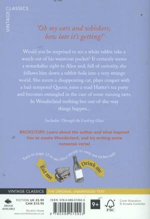 Would you be surprised to see a white rabbit take a watch out of his waistcoat pocket? It certainly seems a remarkable sight to Alice and, full of curiosity, she follows him down a rabbit-hole into a very strange world. She meets a disappearing cat, plays croquet with a bad-tempered Queen, joins a mad Hatter's tea party, and becomes entangled in the case of some missing tarts. In Wonderland nothing but out-of-the-way things happen.