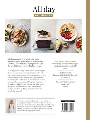 All-day goodness is geïnspireerd op de waanzinnige feelgood gerechten die Denise Kortlever over de hele wereld proefde. Eten dat heerlijk is én je je heerlijk laat voelen. In All-day goodness vind je heel maakbare, snelle recepten die vooral waanzinnig lekker zijn. Geniet met het hele gezin van een hummusbowl met harissatomaatjes en feta, maak indruk met crispy zeebaars met kappertjesmayo en ontbijt in het weekend met de lekkerste fluffy proteïne pancakes. Door de meer dan 60 feelgood recepten in dit boek zit je lekkerder in je vel en heb je volop energie om alles uit je drukke leven te halen. Maar met de heerlijke gerechten uit All-day goodness is het bovenal de hele dag genieten!