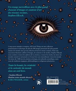 Conçu pour stimuler et inspirer, All Good Things est une collection passionnante et éclectique de plus de 200 images provenant des plus grands musées du monde ainsi qu’une sélection d’oeuvres moins connues. Dans une succession finement calibrée d’images, de citations et de mythes, Stephen Ellcock nous conduit à travers les sphères de la création, à travers les étoiles, les mers, les mondes naturel et surnaturel, et il nous livre son extaordinaire vision du monde. Un trésor de 3 000 ans de création artistique, de recherche scientifique, mais aussi de traditions magiques, philosophiques et religieuses planétaires.