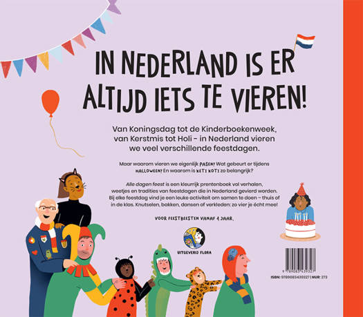 Maar waarom vieren we eigenlijk Pasen? Wat gebeurt er tijdens Halloween? En waarom is Keti Koti zo belangrijk? Alle dagen feest is een kleurrijk prentenboek vol verhalen, weetjes en tradities van feestdagen die in Nederland gevierd worden. Bij elke feestdag vind je een leuke activiteit om samen te doen – thuis of in de klas. Knutselen, bakken, dansen of verkleden: zo vier je écht mee!