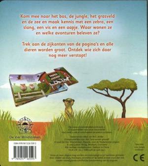 Trek aan de zijkanten van de pagina's en alle dieren worden groot. Ontdek wie zich daar nog meer verstopt!