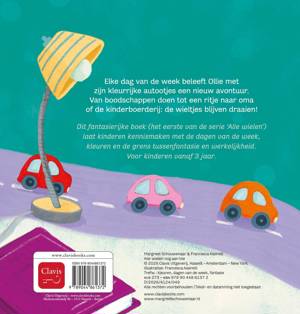 Elke dag van de week beleeft Ollie met zijn kleurrijke autootjes een nieuw avontuur. Van boodschappen doen tot een ritje naar oma of de kinderboerderij: de wieltjes blijven draaien!