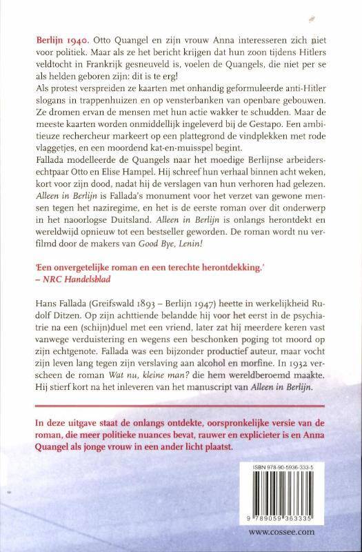 Deze midprice editie heeft dus een dubbel voordeel voor de lezers: een goedkope editie en, voor het eerst, de ‘onbewerkte’ originele versie, zoals Fallada zijn manuscript inleverde.