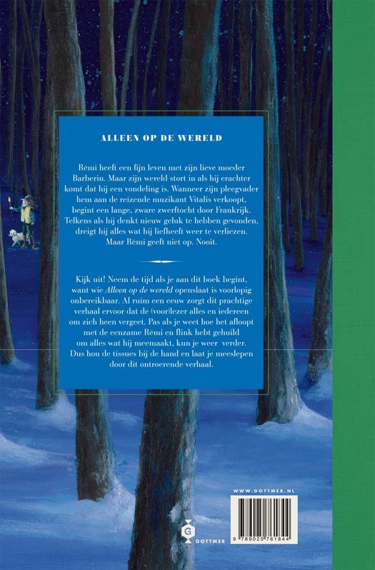 'Alleen op de wereld' is het klassieke verhaal van Hector Malot over vondeling Rémi op zijn reis door Frankrijk. Het geliefde 'Alleen op de wereld' is niet weg te denken uit de canon van kinderboeken die al generaties lang een gevoelige snaar weten te raken. Het is het verhaal van de 8-jarige vondeling Rémi die door zijn pleegouders aan straatmuzikant Vitalis wordt verkocht. Daarmee begint zijn lange zwerftocht door het 19e-eeuwse Frankrijk, waarin hij er na de dood van Vitalis helemaal alleen voor komt te staan. Dankzij de toegankelijke bewerking door Tiny Fisscher kan een nieuwe lichting lezers snikken om het lot van vondeling Rémi. De nieuwe, soepele vertaling maakt deze editie geschikt voor zowel kinderen als volwassenen.