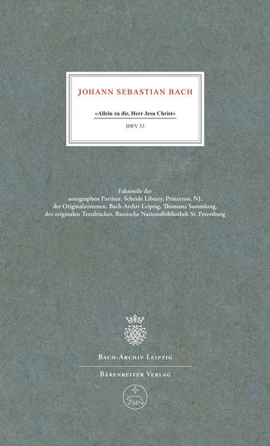 Die Kantate "Allein zu dir, Herr Jesu Christ" BWV 33 gehört zu dem einzigartigen Jahrgang von Choralkantaten, die Bach in seinem zweiten Leipziger Amtsjahr 1724/25 über Texte und Melodien von Kirchenliedern komponierte. Die Kantate zählt zu den wenigen Werken Bachs, zu denen das Quellenmaterial der Erstaufführung im Wesentlichen vollständig erhalten ist - allerdings über die ganze Welt verteilt. Die Kompositionspartitur befindet sich in der Scheide Library zu Princeton, die vokal- instrumentalen Aufführungsstimmen im Bach-Archiv Leipzig und das Textheft von 1724 in der Russischen Nationalbibliothek in St. Petersburg.Sowohl für Fachleute als auch für Freunde bachscher Musik bietet die wertvolle Faksimile-Edition im Schuber einen faszinierenden Einblick in die Werkstatt des Komponisten und die wechselnden Aufführungsbedingungen unter seiner Leitung. Zusätzliche Informationen gibt darüber hinaus der ausführliche Kommentar von Christoph Wolff und Peter Wollny.-- Zu Bachs 325. Geburtstag am 21. März 2010- Auf 100 Exemplare limitierte Auflage- Der Reinerlös kommt der Stiftung Bach-Archiv zugute