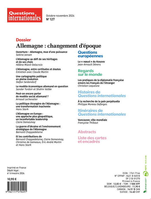 Depuis le début de la guerre russo-ukrainienne, l’Allemagne est entrée dans une nouvelle ère. Le chancelier Scholz a annoncé un « changement d’époque » (« Zeitenwende »). Le pays doit adapter sa politique étrangère et de sécurité au nouveau contexte géostratégique et réorienter une industrie manufacturière dont la puissance reposait jusqu’à présent sur les importations d’énergie russe à bas coût. Déjà, les livraisons d’armement à l’Ukraine ont mis fin à la traditionnelle « retenue » diplomatique allemande et Berlin a nettement durci son positionnement à l'égard de la Chine. C’est donc toute la stratégie européenne et internationale ainsi que le modèle socio-économique du pays qui sont en mouvement.