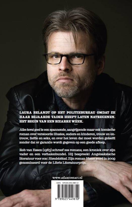Alles komt goed is een spannende, aangrijpende maar ook komische roman over verstoorde illusies, ouders en kinderen, trouw en ontrouw, liefde en seks, en over het leven dat moet worden geleefd zonder dat er garantie wordt gegeven op een goede afloop. Rob van Essen (1963) schreef zes romans, een kroniek over zijn vader en een verhalenbundel. Hij bespreekt Angelsaksische literatuur voor NRC Handelsblad. Zijn roman Visser werd in 2009 genomineerd voor de Libris Literatuurprijs.