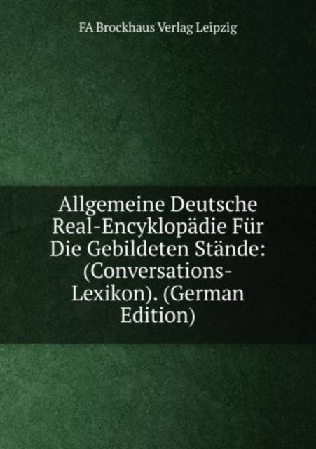 This book, "Allgemeine Deutsche Real-Encyklopadie Fur Die Gebildeten Stande: (Conversations-Lexikon). (German Edition)", by FA Brockhaus Verlag Leipzig, is a replication. It has been restored by human beings, page by page, so that you may enjoy it in a form as close to the original as possible. This book was created using print-on-demand technology. Thank you for supporting classic literature.