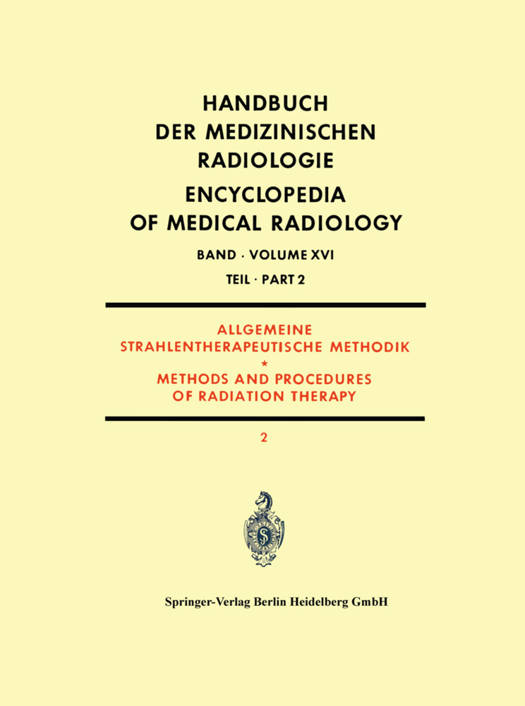 Bereits im Vorwort zu Band XVII l dieses Handbuches wurde darauf hingewiesen, wie sehr die Moglichkeit der Strahlentherapie durch die EinfUhrung der in Beschleunigern erzeugten ultraharten Strahlungen und die Anwendung der von kunstlichen Radio- nukliden ausgehenden Strahlungen erweitert worden sind. Der vorerwahnte Band beschrankte sich auf die Grundlagen der Strahlentherapie und behandelt nur die Methoden der Strahlentherapie mit Rontgenstrahlen. 1m Gegensatz hierzu werden in dem hier vorliegenden Band jetzt die Moglichkeiten der Therapie mit Corpuscularstrahlen, d. h. schnellen Elektronen, energiereichen Neutronen und schweren Teilchen, wie Protonen und Deuteronen beschrieben. AuBerdem enthalt der zweite Band zum Thema Methoden der Strahlentherapie in zahlreichen von auf den einzelnen Spezial- gebieten besonders erfahrenen Autoren verfaBten Beitragen Beschreibungen uber die Therapie mit Strahlungen, die von den kunstlich erzeugten radioaktiven Stoffen aus- gehen. Hierzu gehort vor aHem die Telegammatherapie mit 60CO und 137CS, die Nah- bestrahlung und Kontaktbestrahlung mit umschlossenen radioaktiven Stoffen, die inter- stitielle Implantationstherapie, sowie die Therapie mit inkorporierten, offenen Radio- nukliden. Viele dieser Methoden haben sich in jahrelanger Praxis bereits bestens bewahrt und sind aus der modernen Strahlentherapie nicht mehr wegzudenken. Ihre Technologie wurde eingehend beschrieben. Andere Methoden sind vielleicht geeignet, in der Zukunft Eingang in die Praxis zu finden und deshalb nicht weniger interessant. Der vorliegende Band enthalt auBerdem einen Abschnitt uber die Bewegungs- bestrahlung, da diese Technik in gleicher Weise mit konventioncllen und ultraharten Rontgenstrahlen als auch mit den Gammastrahlen kunstlicher Radionuklide und ultraharten Rontgenstrahlen von Beschleunigern durchgefiihrt werden kann.