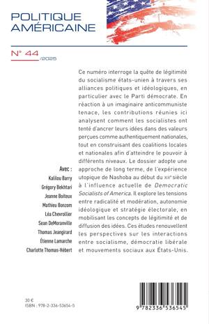 Ce numéro interroge la quête de légitimité du socialisme états-unien à travers ses alliances politiques et idéologiques, en particulier avec le Parti démocrate. En réaction à un imaginaire anticommuniste tenace, les contributions réunies ici analysent comment les socialistes ont tenté d'ancrer leurs idées dans des valeurs perçues comme authentiquement nationales, tout en construisant des coalitions locales et nationales afin d'atteindre le pouvoir à différents niveaux. Le dossier adopte une approche de long terme, de l'expérience utopique de Nashoba au début du xixe siècle à l'influence actuelle de Democratic Socialists of America. Il explore les tensions entre radicalité et modération, autonomie idéologique et stratégie électorale, en mobilisant les concepts de légitimité et de diffusion des idées. Ces études renouvellent les perspectives sur les interactions entre socialisme, démocratie libérale et mouvements sociaux aux États-Unis.