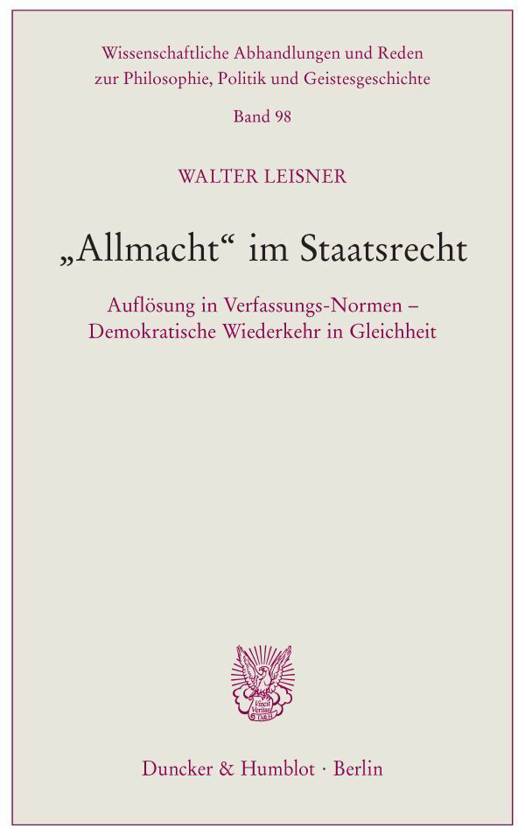Allmacht ist ein Wort des Allgemeinen Sprachgebrauchs. Es steht fur Machtigkeit, fur Staatlichkeit als System(bildung) der Macht, nicht als auaerrechtlicher Begriff, wohl aber rechtsubergreifend, als Staatsrecht gerade der Demokratie. Als ihren Trager kennt das Recht ein Wesen in Personlichkeit (Gott, Monarch), Staat als Inhaber, Volk als Trager, Menschen als Grundlagen und Grenzen. Allmacht ist in Gleichheit moglich wie auch Allmacht in Freiheit. Allmacht in Freiheit bedeutet letzte Festigkeit in (steter) Bewegung. Allmacht ist ein faktisches Rechtsphanomen, zugleich aber eine normative Ordnung, in einem Staatsrecht von Rechtsnormen: Das Volk als Souveran, demokratische Staatsorgane in Verfassungsformen, Grundrechte als Verfassungsbestimmungen. Als Verrechtlichung(en) der Demokratie begegnen einzelne solchen Machtformen auf ihrem juristischen Weg einer Parlamentarisierung zu Verfassungsorganen und grundrechtlichen Bindungen. Dieser ihr Staat erschlieat sich darin aber auch der Feinheit machtsensibler Formenrelationen.