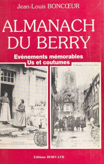 L’almanach du Berry est un retour aux sources... Agrémenté de dictons, de proverbes, de devinettes, de recettes et de remèdes, il propose, mois par mois, à la manière des almanachs populaires de nos aïeux, le relevé des rassemblements communautaires du Berry, fêtes et foires, laïques ou religieuses. La pérennité des coutumes locales est déjà un fait historique. Par le rappel des événements mémorables qui marquèrent le cours du temps, Jean-Louis Boncœur privilégie la petite histoire aux dépens de la « grande ». Et c’est respecter la tradition que de vouloir faire revivre, dans les pages d’un almanach, la vie des humbles, avec leurs problèmes, leurs joies et leurs peines de tous les jours. Almanach populaire, richement illustré, l’ALMANACH DU BERRY est un ouvrage de référence qui ne manquera pas de passionner les vrais Berrichons.