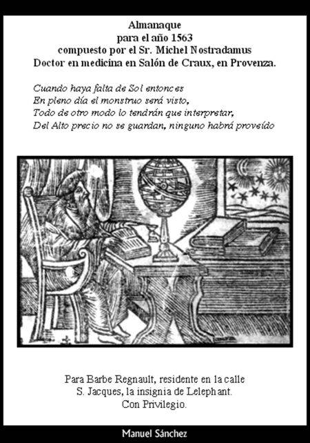 Esta traducción ha sido realizada meticulosamente desde el ejemplar original, Almanach pour l'an 1563, editado por Barbe Regnault, conservando y respetando al maximo posible la estructura del mismo asi como su contenido para hacerlo llegar desde 1563 a las manos del lector del siglo XXI.