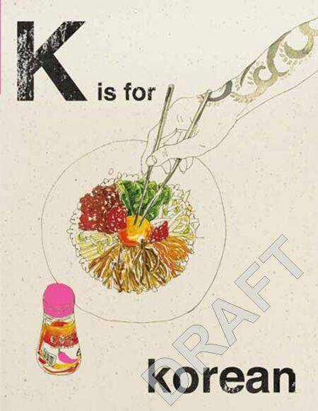 K is for Korean covers the fermented food stars of the moment Kimchi, Oi Jee, Kkakdugi whilst also offering Bibimbap and KFC (Korean Fried Chicken).