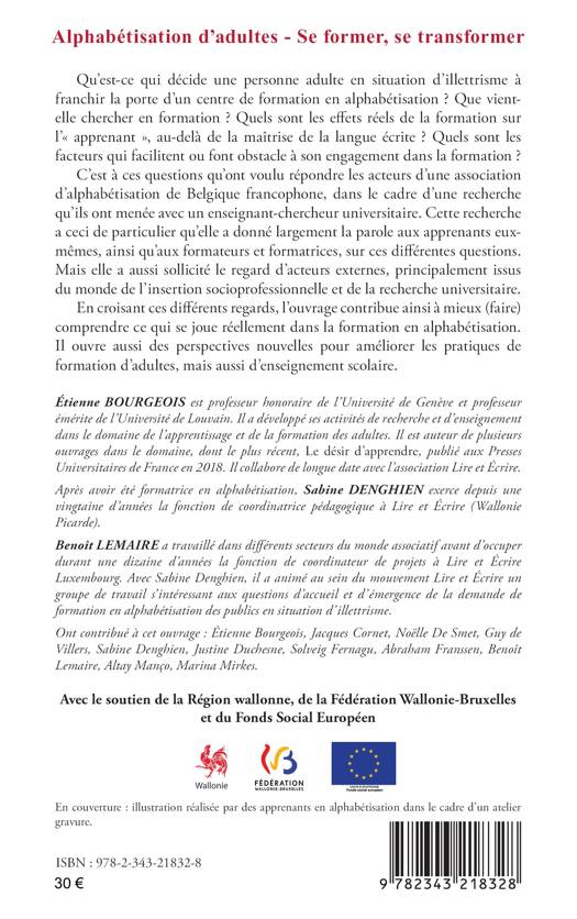 Qu’est-ce qui décide une personne adulte en situation d'illettrisme à franchir la porte d’un centre de formation en alphabétisation ? Que vient-elle chercher en formation? Quels sont les effets réels de la formation sur l’« apprenant », au-delà de la maîtrise de la langue écrite ? Quels sont les facteurs qui facilitent ou font obstacle à son engagement dans la formation ? C’est à ces questions qu’ont voulu répondre les acteurs d’une association d’alphabétisation de Belgique francophone, dans le cadre d’une recherche qu’ils ont menée avec un enseignant-chercheur universitaire. Cette recherche a ceci de particulier qu’elle a donné largement la parole aux apprenants eux-mêmes, ainsi qu’aux formateurs et formatrices, sur ces différentes questions.