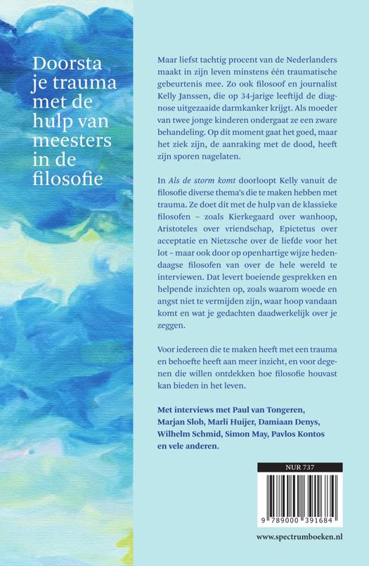 Op 34-jarige leeftijd krijgt filosoof en journalist Kelly Janssen de diagnose uitgezaaide darmkanker. Na jarenlange klachten en telkens te zijn weggestuurd door de artsen, komt de klap hard aan. Als moeder van twee jonge kinderen ondergaat ze een zware behandeling, waarbij ze het geluk heeft in aanmerking te komen voor immuuntherapie. Op dit moment is ze kankervrij, maar het ziek zijn, de aanraking met de dood, heeft zijn sporen nagelaten. Tijdens haar ziekte onderzocht ze hoe filosofen met zulke uitdagingen om zouden gaan. Het resultaat is een boek dat ze zelf had gewild: een gids om trauma te doorstaan met filosofen als gesprekspartner. Maar bovenal met de boodschap: omarm je gedachten en emoties en blijf trouw aan jezelf tijdens het herstelproces.