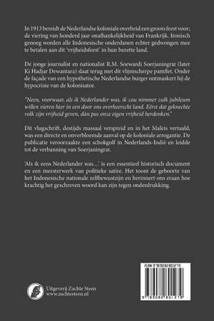 De jonge journalist en nationalist R.M. Soewardi Soerjaningrat (later Ki Hadjar Dewantara) slaat terug met dit vlijmscherpe pamflet. Onder de façade van een hypothetische Nederlandse burger ontmaskert hij de hypocrisie van de kolonisator.