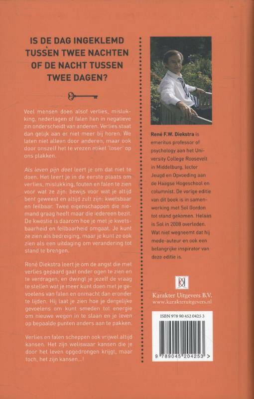 René Diekstra leert je om de angst die met verlies gepaard gaat onder ogen te zien en te verdragen, en dwingt je jezelf de vraag te stellen wat je meer kunt doen met je gevoelens van falen en onmacht dan eronder te lijden. Hij laat je zien hoe je dergelijke gevoelens om kunt smeden tot energie om nieuwe wegen in te slaan en je leven op bepaalde punten anders aan te pakken.