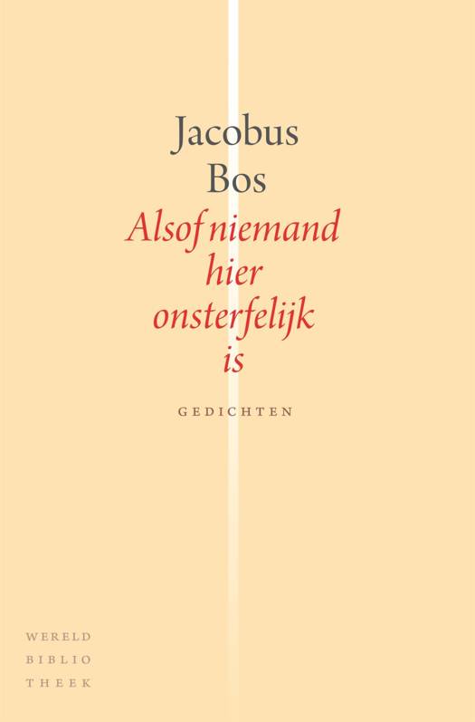 Alsof niemand hier onsterfelijk is is de achtste dichtbundel van Jacobus Bos (1943). Eerder verschenen van hem Mijn blauwe evenbeeld (1987), De zon verbergt de oceaan niet (1989), Wie vliegt die vliegt (2002), Liefde - onheil (2004), Zingt de zee (2007), Veilig is het nergens (2010) en Het geluk van de jeugd (2013).