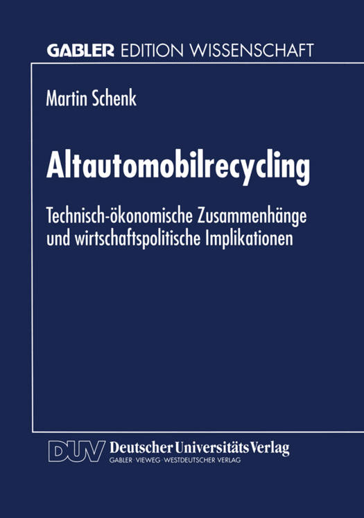 Martin Schenk untersucht, welchen Beitrag die Wirtschaftspolitik leisten kann und sollte, um auch zukünftig das Ziel eines umweltverträglichen Altautomobilrecycling zu erreichen.