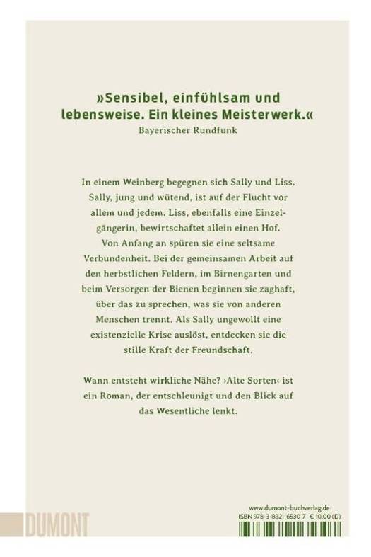 Sally und Liss: zwei Frauen, wie sie unterschiedlicher nicht sein könnten. Sally, kurz vor dem Abitur, will einfach in Ruhe gelassen werden. Sie hasst so ziemlich alles: Angebote, Vorschriften, Regeln, Erwachsene. Fragen hasst sie am meisten, vor allem die nach ihrem Aussehen.Liss ist eine starke, verschlossene Frau, die die Arbeit, die auf dem Hof anfällt, problemlos zu meistern scheint. Schon beim ersten Gespräch der beiden stellt Sally fest, dass Liss anders ist als andere Erwachsene. Kein heimliches Mustern, kein voreiliges Urteilen, keine misstrauischen Fragen. Liss bietet ihr an, auf dem Hof zu übernachten. Aus einer Nacht werden Wochen. Für Sally ist die ältere Frau ein Rätsel. Was ist das für Eine, die nie über sich spricht, die das Haus, in dem die frühere Anwesenheit anderer noch deutlich zu spüren ist, allein bewohnt? Während sie gemeinsam Bäume auszeichnen, Kartoffeln ernten und Liss die alten Birnensorten in ihrem Obstgarten beschreibt, deren Geschmack Sally so liebt, kommen sich die beiden Frauen näher. Und erfahren nach und nach von den Verletzungen, die ihnen zugefügt wurden.