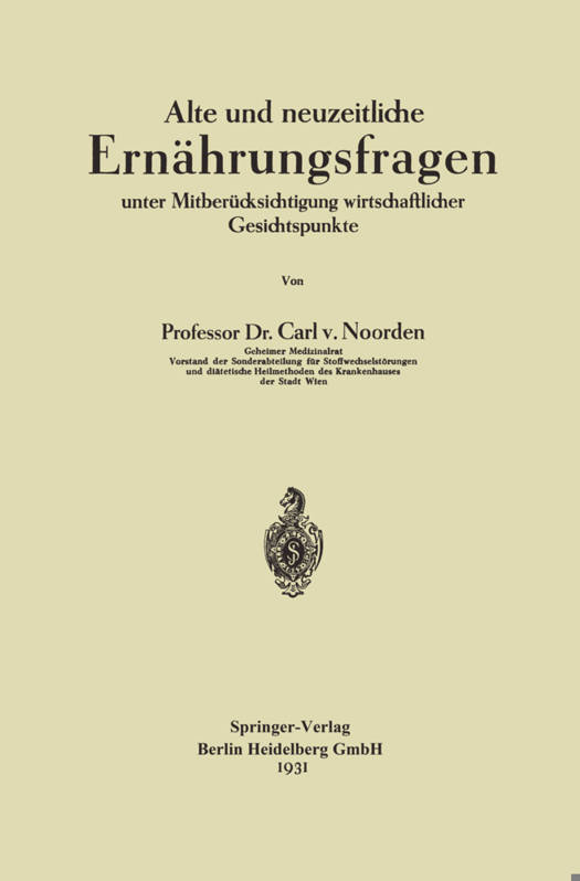 Alte Und Neuzeitliche Ernährungsfragen