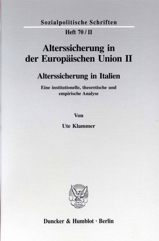 Alterssicherung in Italien. Eine Institutionelle, Theoretische Und Empirische Analyse