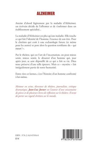 Atteint d'abord légèrement par la maladie d'Alzheimer, un écrivain décide de l'affronter et de s'enfermer dans un établissement spécialisé... La maladie d'Alzheimer est plus qu'une maladie. Elle touche ce qui fait l'identité de l'homme, l'essence de son être. Pour le chrétien qui croit à une eschatologie future se pose alors la question terrifiante du " qui meurt ? " Par le théâtre, qui est l'art de l'incarnation, on peut mieux saisir, mieux sentir, le désarroi d'un homme qui, jour après jour, se sent dépouillé de ce qui a fait sa vie. Dieu nous préserve d'une telle épreuve. Mais ce "mystère fait intégralement partie de notre humanité.