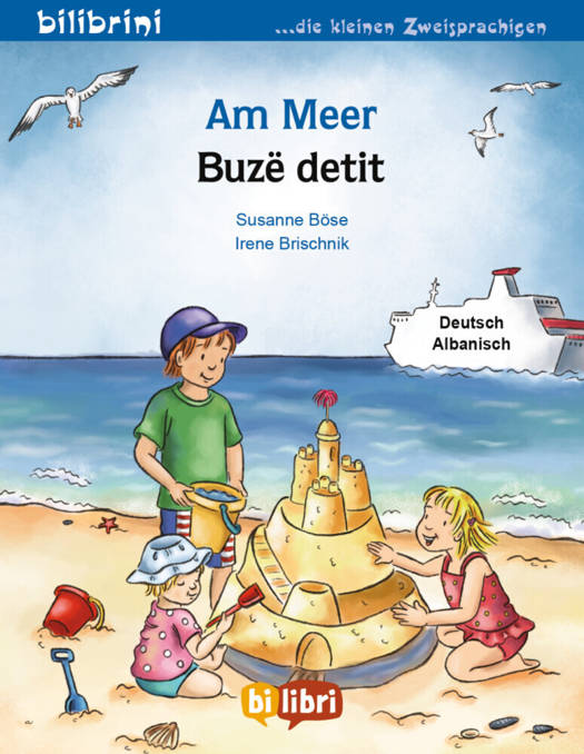 Am Meer, aus der Reihe bilibrini - die kleinen Zweisprachigen, ist ein zweisprachiges Kinderbuch auf Deutsch und Albanisch für Kinder ab 3 Jahren. Leo und Klara sind mit ihren Eltern und ihrer kleiner Schwester Eva im Urlaub. Sie spielen am Strand, schwimmen im Meer und besuchen den Hafen. Sandburgbauen, Wassertiere-Suchen, Eis-Essen, unter Wellen tauchen und am Abend Sternegucken. Es gibt so viel zu tun, wenn man Urlaub am Strand macht! Farbenfrohe Illustrationen laden zum Betrachten ein und eine Wort-Bild-Leiste auf jeder Seite greift wichtige Gegenstände erneut auf und fördert gezielt das Suchen, Finden und Benennen.Das Buch ist in weiteren Sprachfassungen - immer in Kombination mit Deutsch - erhältlich.