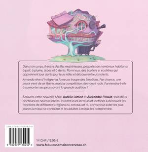 Dans ton corps, il existe des îles mystérieuses, peuplées de nombreux habitants, à poil, à plume, à bec et à dents. Parmi eux, des écoliers et écolières qui apprennent jour après jour leurs rôles et découvrent leurs talents.Amanda rêve d’intégrer la fameuse troupe des Émotions. Par chance, une place vient de se libérer, mais la compétition s’annonce rude. Parviendra-t-elle à surmonter ses peurs avant la grande audition ?À travers cette série, Aurélie Lattion et Alexandre Pinault, tous deux docteurs en neurosciences, invitent leurs lecteurs et lectrices à découvrir les différentes régions du cerveau et du corps pour aider les plus jeunes à mieux se connaître et les adultes à mieux les comprendre.