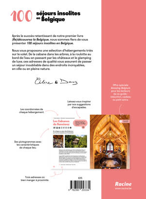 Après le succès retentissant de notre premier livre (Re)découvrez la Belgique, nous sommes fiers de vous présenter 100 séjours insolites en Belgique.