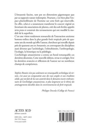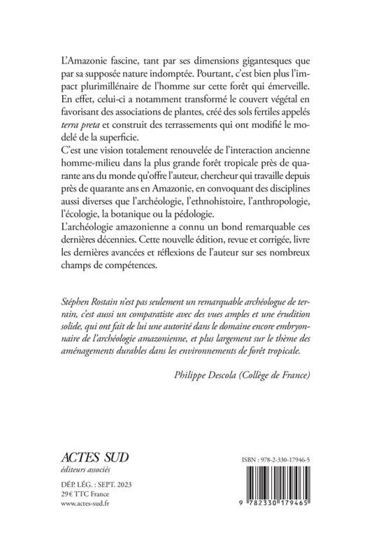 L'Amazonie fascine, tant par ses dimensions gigantesques que sa supposée nature indomptée. Pourtant, c'est bien plus l'impact millénaire de l'homme sur cette forêt qui émerveille. Il a en effet notamment transformé le couvert végétal en favorisant des associations de plantes, créé des sols fertiles appelés «terra preta» et construit des terrassements qui ont modifié le modelé de la superficie. C'est une vision totalement renouvelée de l'interaction ancienne homme-milieu dans la plus grande forêt tropicale du monde qu'offre l'auteur, chercheur qui travaille depuis 30 ans en Amazonie, en convoquant des disciplines aussi diverses que l'archéologie, l'ethnohistoire, l'anthropologie, l'écologie, la botanique ou la pédologie.