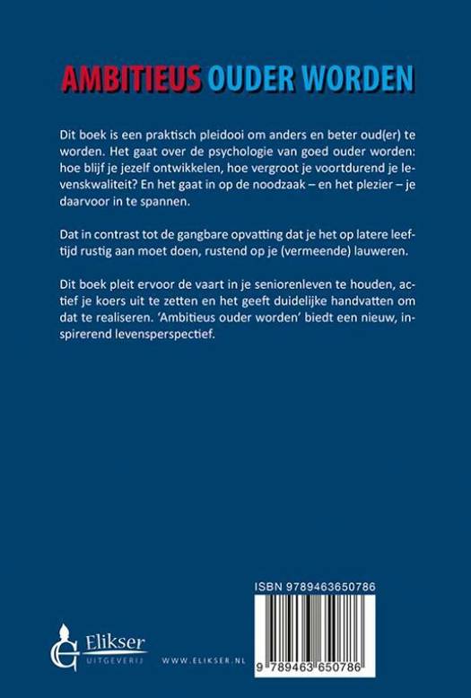 Dit boek pleit ervoor de vaart in je seniorenleven te houden, actief je koers uit te zetten en het geeft duidelijke handvatten om dat te realiseren. 'Ambitieus ouder worden' biedt een nieuw, inspirerend levensperspectief.